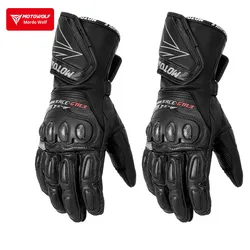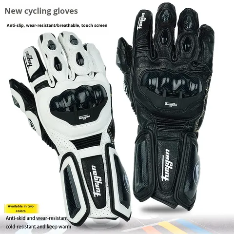 Gants de course en fibre de carbone pour hommes Gants d'équitation longs et chauds en cuir véritable Gants de moto de protection pour l'extérieur